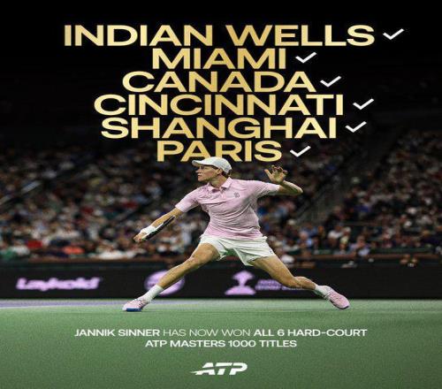辛納解鎖全部六站硬地大師賽冠軍,一紀錄比肩德約費德勒