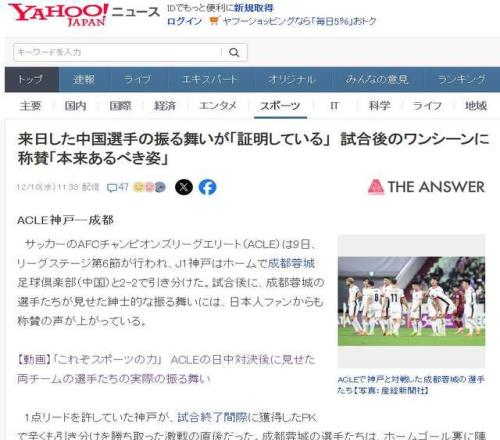 日本媒體直言,這就是體育的力量,成都蓉城球員也展現出了紳士風度,雙方球隊和球迷賽後也有溫暖互動,引發了日本球迷的一片讚揚。還有不少日本球迷表示,太出色了!無論是成都蓉城的球員還是球迷,都非常棒!比賽拚盡全力,賽後彼此尊重,這是最重要的。