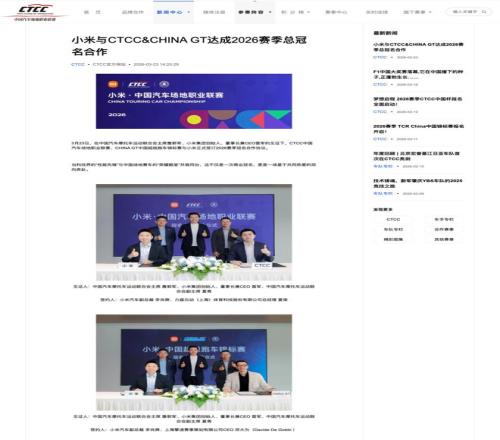 2026年3月,小米集團創始人雷軍與中國汽摩聯主席詹郭軍共同見證了一個曆史時刻:小米與CTCC、China GT、CEC三大國家級A類賽事正式簽訂2026賽季冠名合作協議。小米SU7 Ultra和YU7分別擔任賽事官方安全車和醫療車。在China GT上海揭幕戰中,47台賽車參賽創曆史新高,涵蓋GT3、GT4、GTC等組別,法拉利、保時捷、蘭博基尼、奔馳AMG等國際品牌與小米、蔚來、極氪等國產新能源超跑同場競技,燃油與電動的巔峰對決看點拉滿。